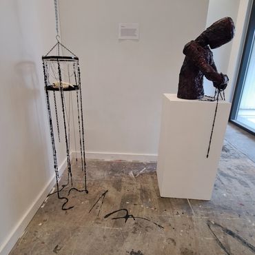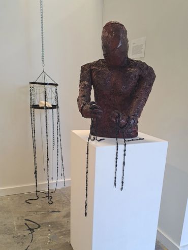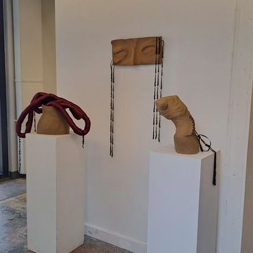 In my work, I explore insecurities derived from my personal physiology. I’m interested in breaking down the body into a man-made object -a piece of production that if it fails, it’s rejected- to reflect what we as a society deem as invaluable. To achieve this, I focus on the medical disruption of the body and how it affects our perception of beauty. I use contrasting textures and materials to get my point across, such as imperfections being represented with recyclable objects that are then adorned with store bought jewels. I make my anthropomorphous sculptures life size or enlarged to confront the audience of their judgement towards the unremarkable body. The need to be accepted and beautiful has plagued my life since I was conscious about my differences. When you believe with your chest that you are a monster, you will do whatever it takes to fit inside the box.
